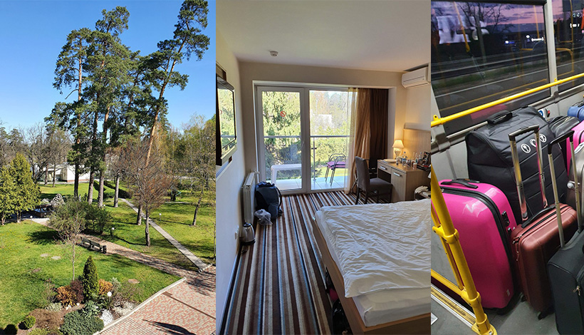 En Borispil todos los trabajadores llevaban la ropa protectora, antes de que permitieron salir del avión, a nosotros habían medido la temperatura. No nos permitieron coger el taxi o que Biotexcom organice el transporte, dieron el permiso sólo para el vehículo preparado por el gobierno. Mientras estuvimos esperando el transporte durante dos horas, nos cuidaron bien. El vehículo parecía a un autobus grande predistinado solo para nosotros, éramos cinco (cuatro adultos + un niño de un año)! Nos sentimos seguros, el autobús estaba vacío, teniendo en cuenta el riesgo de contaminación. Pero nosotros no sabemos donde ellos encontraron al conductor. Según los datos de Google Maps, el viaje debería durar minutos, así como era tarde y casi no había tráfico. Pero el conductor no sabía el camino, se paraba constantemente preguntando a la gente la ruta, pasamos tres horas para llegar al hotel. ¡Por fin llegamos, cansados pero felices!